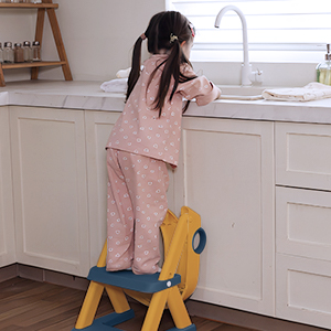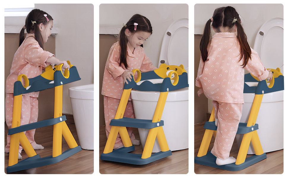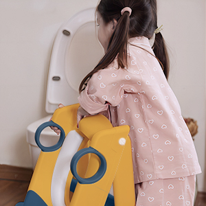 2-in-1 Usage : Our multifunctional toilet seat can be used as a step stool for children to reach higher places in addition to being a training toilet ladder. It is convenient for your kids to wash their hands or take things. The product is light and convenient for children to carry by themselves, and the foldable design makes it easy to store.